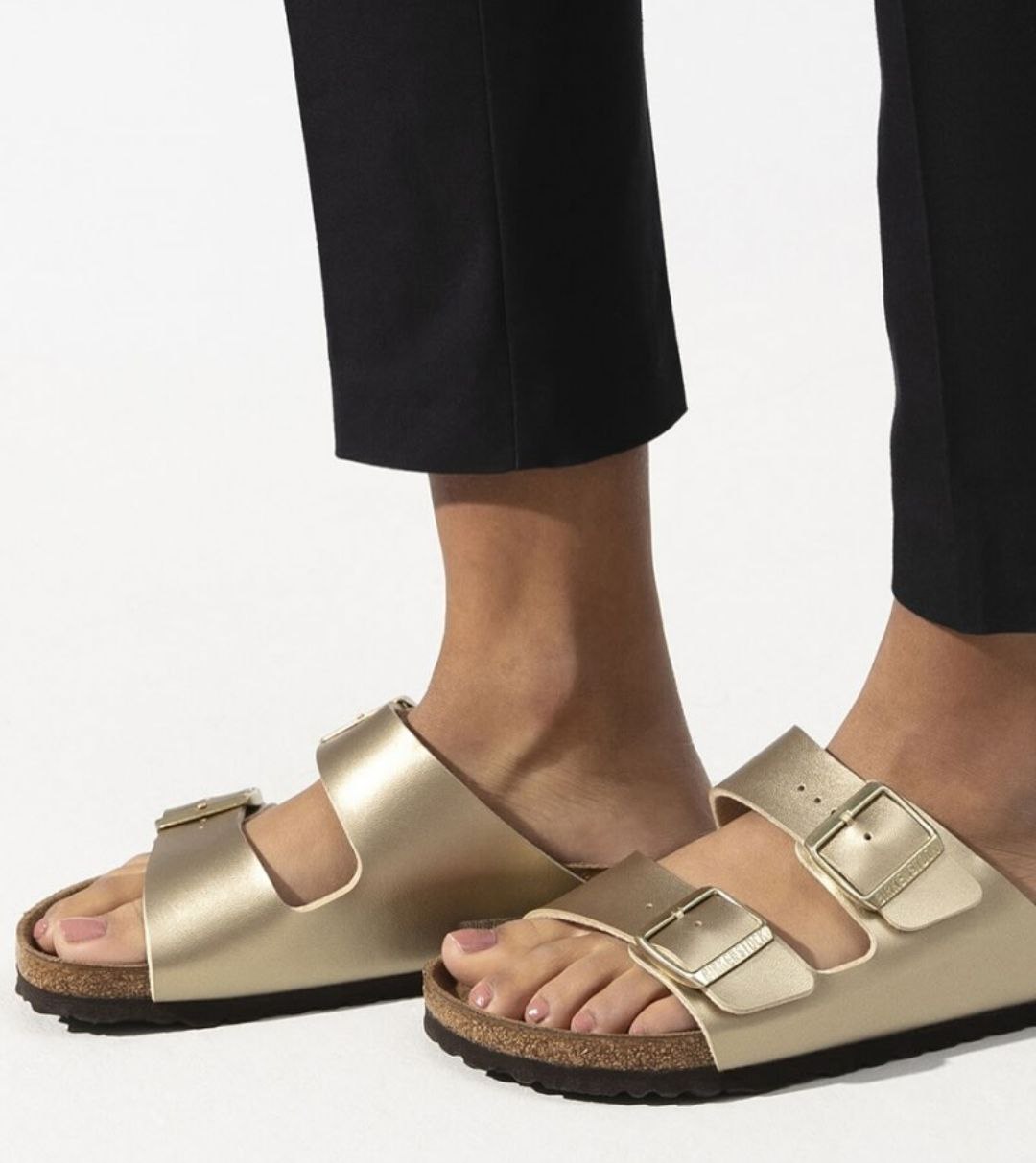 This Boston Footbed model by Birkenstock was inspired by nature and has a soft suede upper that surrounds the foot. It also includes a soft footbed with an extra integrated foam layer for cushioning. One strap with a metal pin buckle that may be adjusted is also featured on this product.
