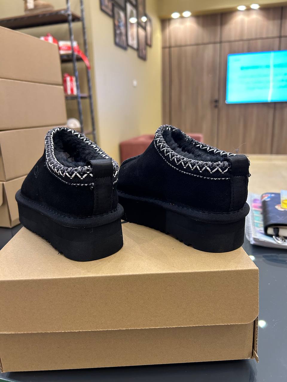 UGG Tazz platform slipper in black suede
